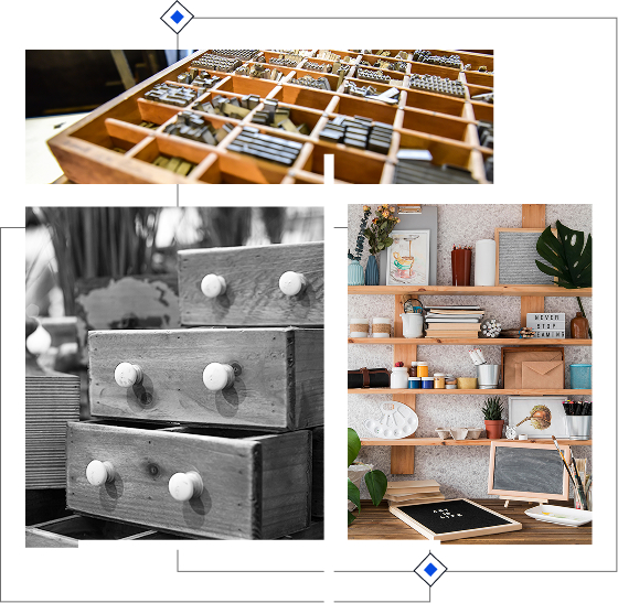 Smart storage solutions that keep supplies accessible and creativity flowing. Well-planned layouts make it easy to create without distractions or clutter.
